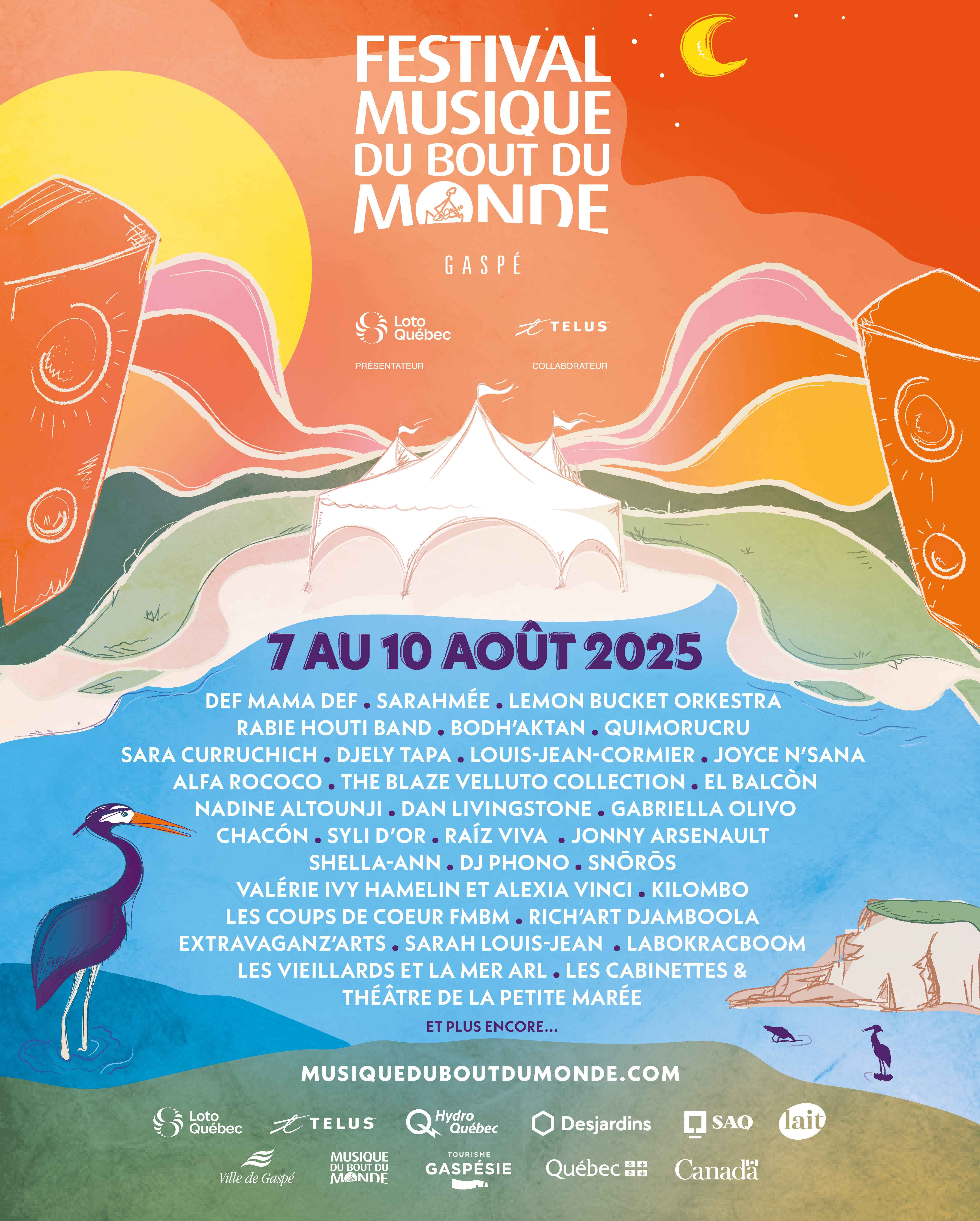 Le Festival Musique du Bout du Monde est présenté par Loto-Québec en collaboration avec TELUS. L’organisation tient également à remercier la Ville de Gaspé, le gouvernement du Québec, le gouvernement du Canada, Tourisme Gaspésie, Hydro-Québec, Desjardins, la Société des alcools du Québec, Les Producteurs de lait du Québec ainsi que la multitude de partenaires qui font de cet événement un rendez-vous incontournable en Gaspésie.